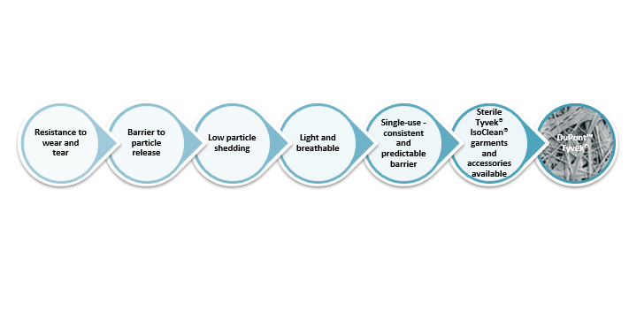 DuPont understands the need to ensure contamination free work places and meeting strict pharma regulatory requirements. For this reason, DuPont protective garments provide reliable protection of workers as well as sensitive pharmaceutical processes and products, based on scientific expertise in people protection and unique properties of the lightweight and durable Tyvek® fabric.